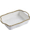 Rectangular Tray perfect for tempting guests with your delicious main course or hearty sides. Or use for dessert to display an assortment of treats and sweets! Gleaming with rich texture in a striking and elegant gold titanium finish. Two cut-out handles for easy serving. Food safe. Dishwasher safe. Oven safe to 550°. Easy Care.