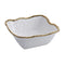 Gleaming white porcelain with lustrous gold beads in titanium. Food safe, dishwasher safe, oven safe to 550°. Easy Care.